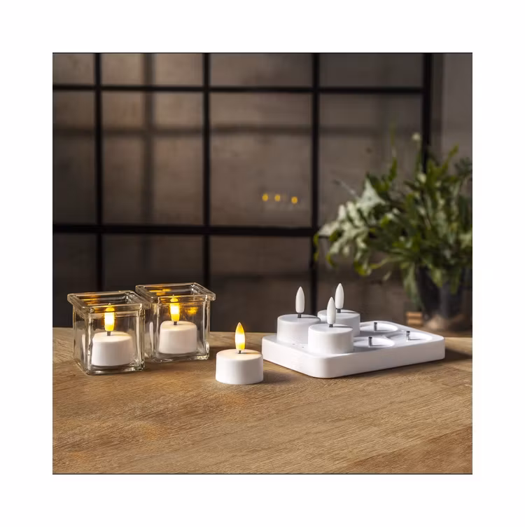 Flamme Soft är ett stämningsfullt batteriljus med naturtrogen Flamme‑låga och en imponerande brinntid på cirka 1000 timmar. Den sammetslena ytan och den blanka nedsänkningen som liknar flytande vax ger ett extra realistiskt intryck.