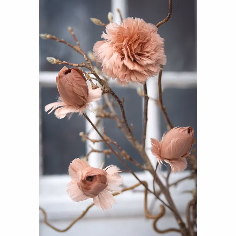 En mjuk och dekorativ fjäderblomma i varm mullvadsfärg, perfekt för att ge påskris, arrangemang eller dekorationer ett elegant och lekfullt uttryck. Tack vare det praktiska clip-fästet är den enkel att sätta fast precis där du vill ha den. Finns i flera färger för att mixa och matcha efter stil och säsong.