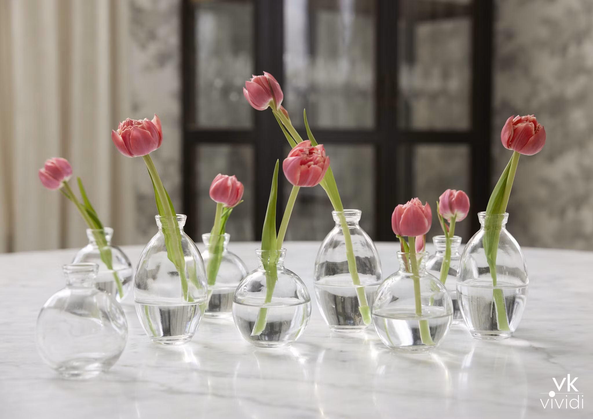 Liten söt glasvas att använda ensam eller i grupp. Med sina enkla former och lilla storlekar behöver du bara en eller två blommor för att skapa ett vackert arrangemang.