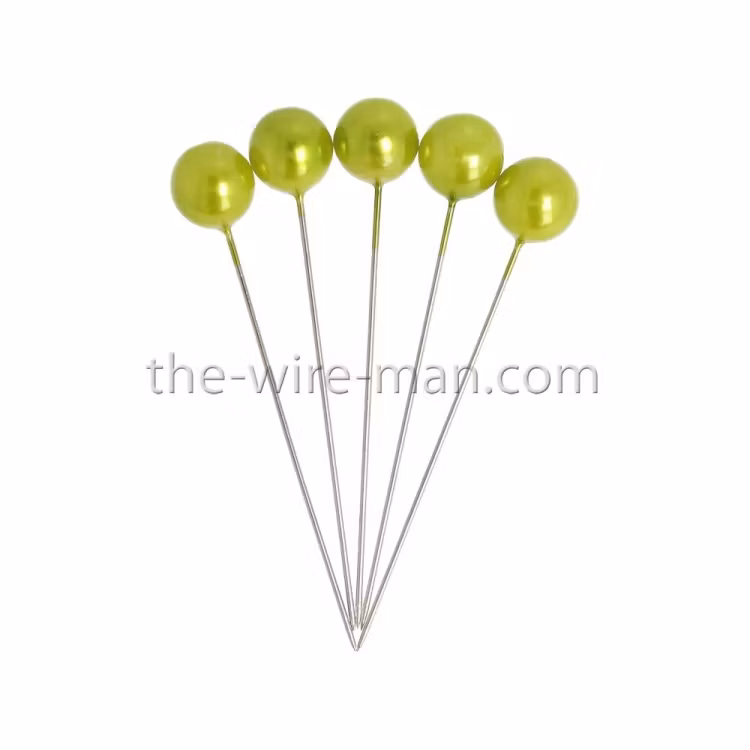 Floristnålar med ett elegant pärlhuvud i Grönt. Perfekta för att dekorera brudbuketter, blommor, arrangemang och kransar.