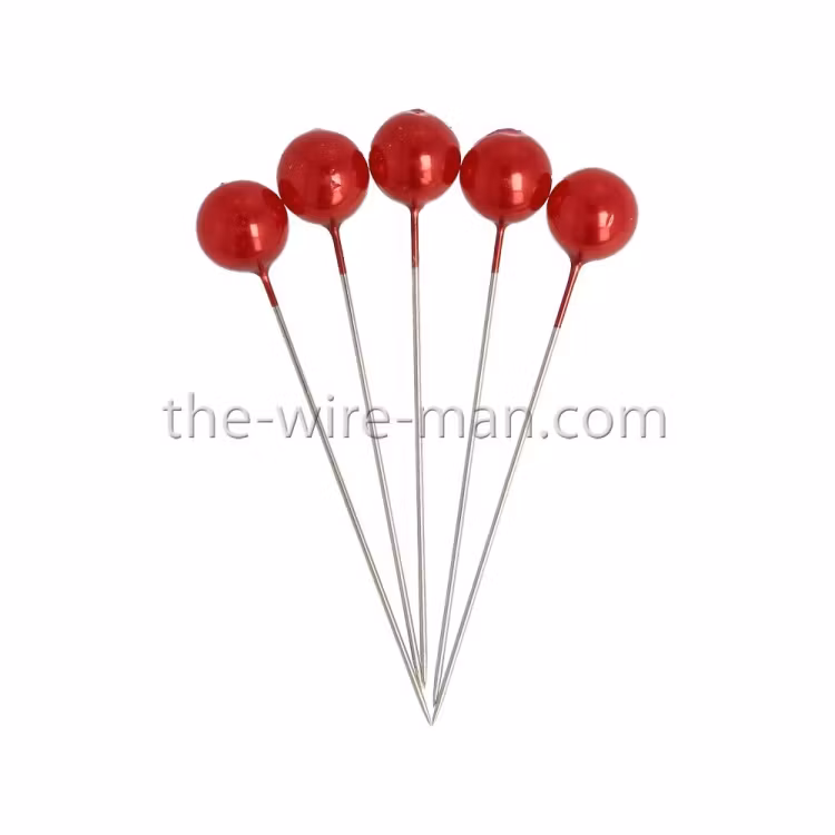 Floristnålar med ett elegant pärlhuvud i Rött. Perfekta för att dekorera brudbuketter, blommor, arrangemang och kransar.