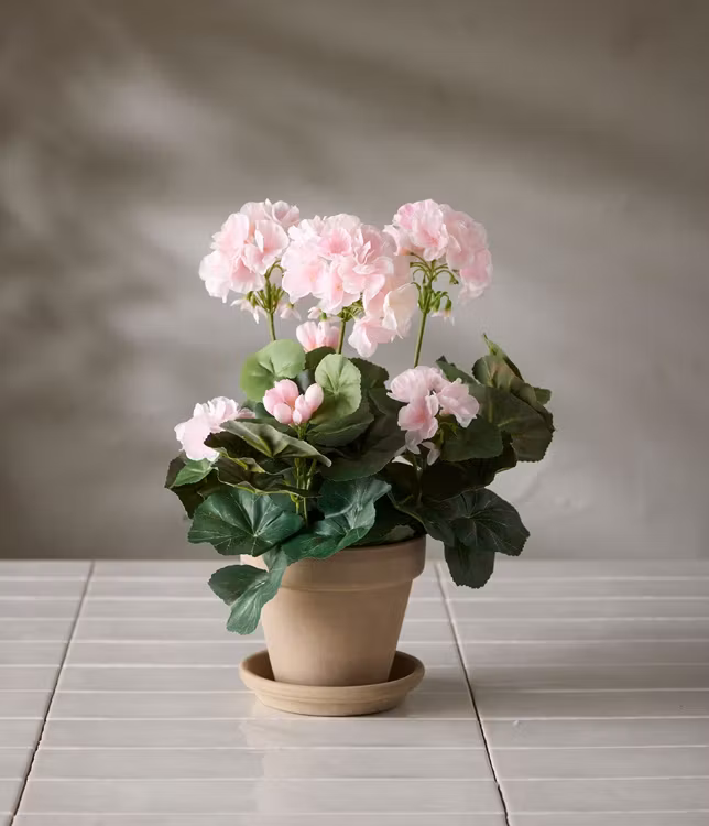 Både blommor och blad är vackra på denna mycket verklighetstrogen pelargon. En mycket naturtrogen konstväxt som ger blomsterprakt utan att kräva någon som helst omvårdnad, perfekt för att skapa en unik och personlig inredning. Att inreda med konstväxter är ett lättsamt sätt att skapa inbjudande miljöer där levande blommor kanske inte är ett alternativ. Alla växter från Mr Plant är noga utvalda ur deras stora och fantastiskt fina sortiment konstväxter! Finns i flera färger.