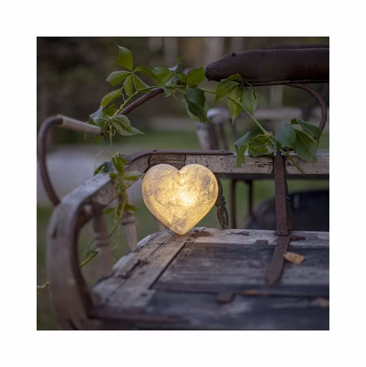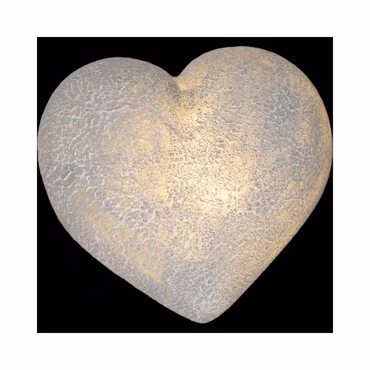 Fint hjärta i polystone med naturtrogen stenlook. En stämningsfull dekoration som passar både inne och ute. Det varmvita skenet ger ett mjukt ljus och den inbyggda timern 6 h på, 18 h av, repeterande gör användningen enkel i vardagen.
